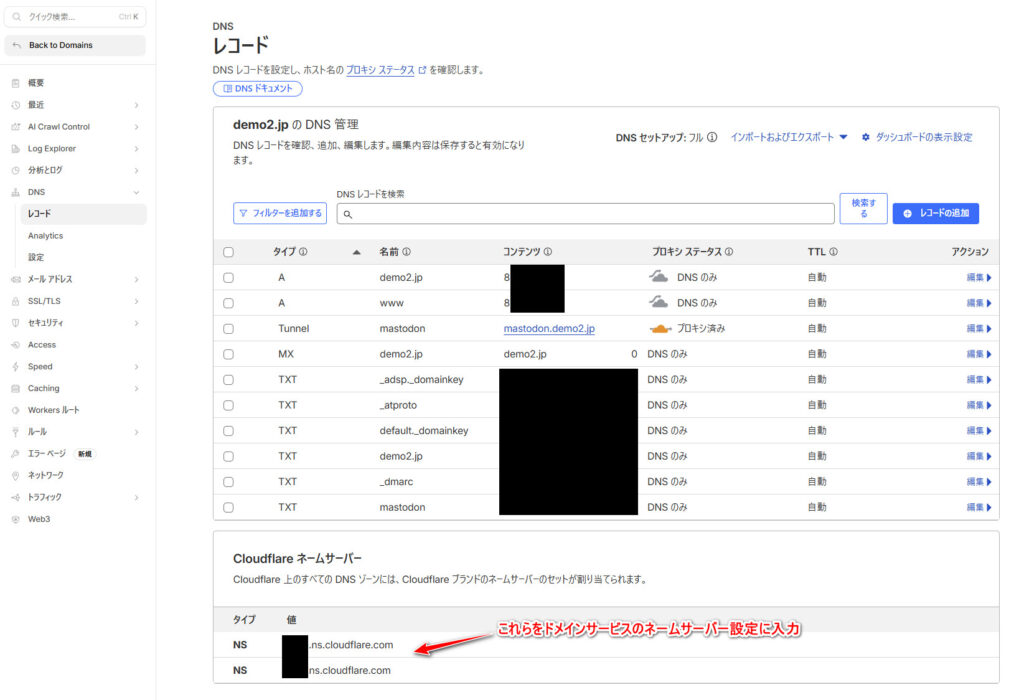 その為、これらもまとめてCloudflareのDNSに設定をする必要があります。