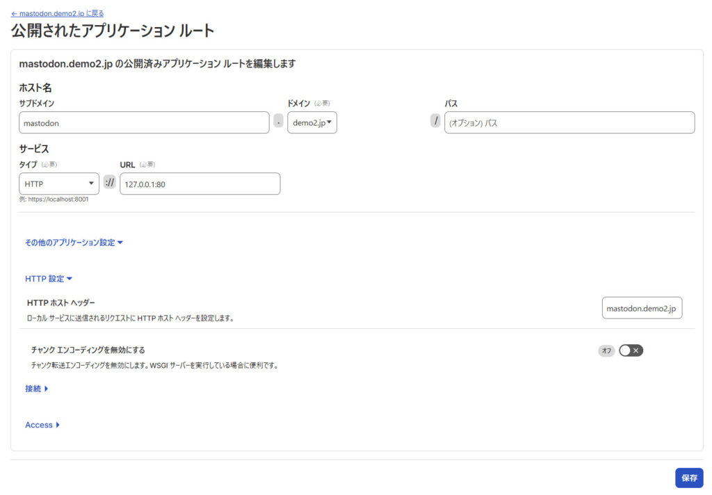mastodon.demo2.jpをTunnelへ接続(CNAME)- nginxをTunnel向けに調整
